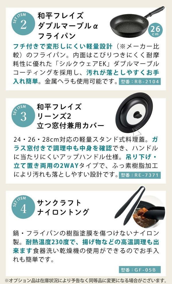 2)和平フレイズ フライパン RB-2104 26cm ダブルマーブルα (ガス火専用)