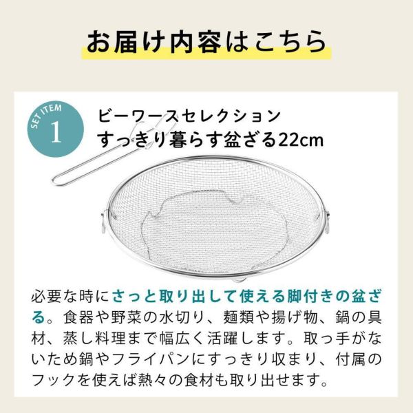 1)ビーワーススタイル すっきり暮らす盆ざる22cm 持ち上げフック付き