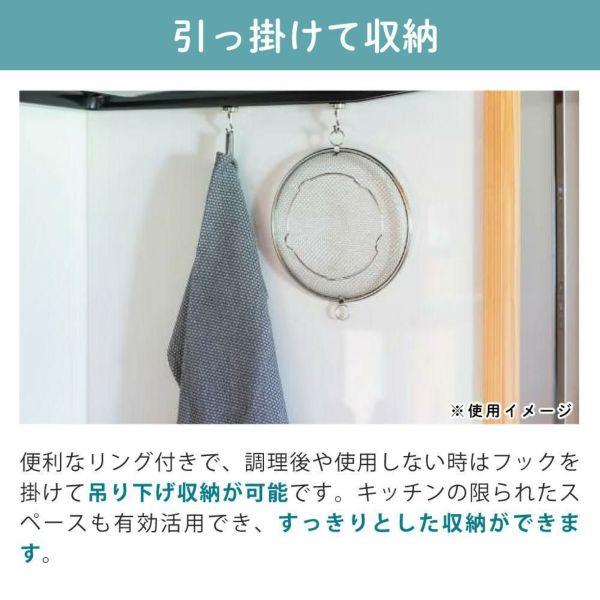 取っ手がないので、鍋やフライパンにすっきり収まり、蒸し料理にも最適。持ち上げやすいフック付きだから、熱々の食材も安心して取り出せます。