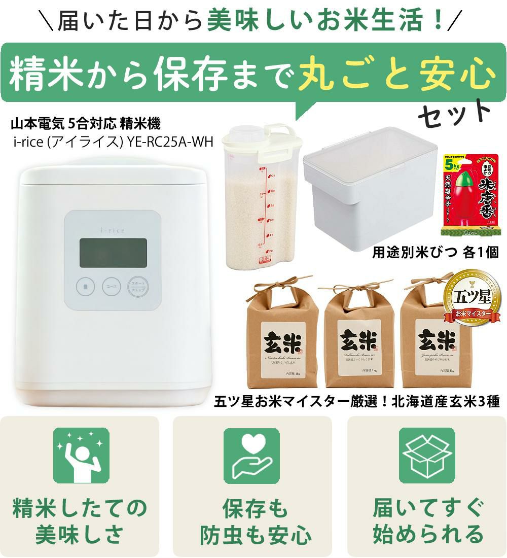 他の画像を見る 5合対応 稼働音を抑えた家庭用精米機 山本電気 精米機 家庭用 i-rice アイライス YE-RC25A-WH ホワイト + 玄米3種各1kg + シンク下米びつ + 冷蔵庫用米びつ + 米唐番5kg用セット 販売価格 ¥ 39,980 税込 カートに入れる お気に入りに登録する (0件)