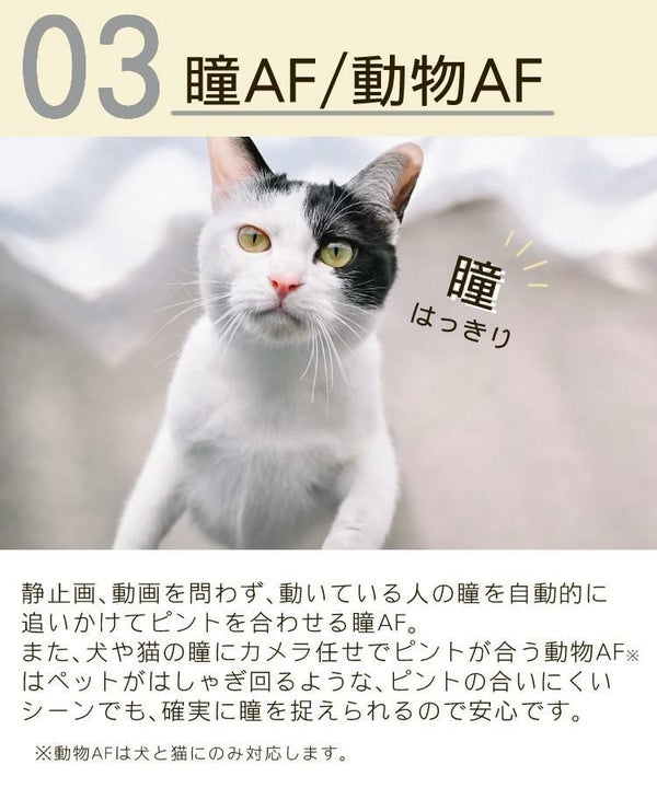 ■動画にも有効な瞳AF/動物AF搭載の高性能AF動画にも有効な瞳AF/動物AF搭載の高性能AF