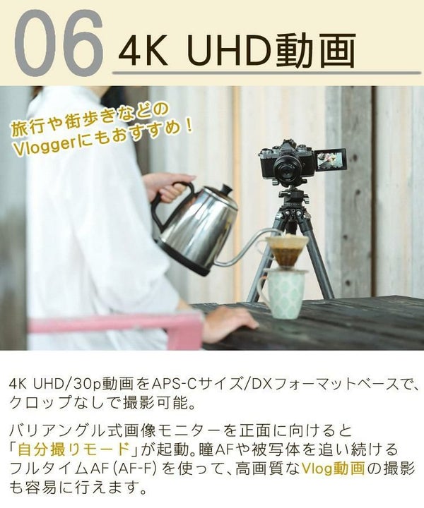 フルタイムAF(AF-F)を使って、高画質なVlog動画の撮影も容易に行えます。