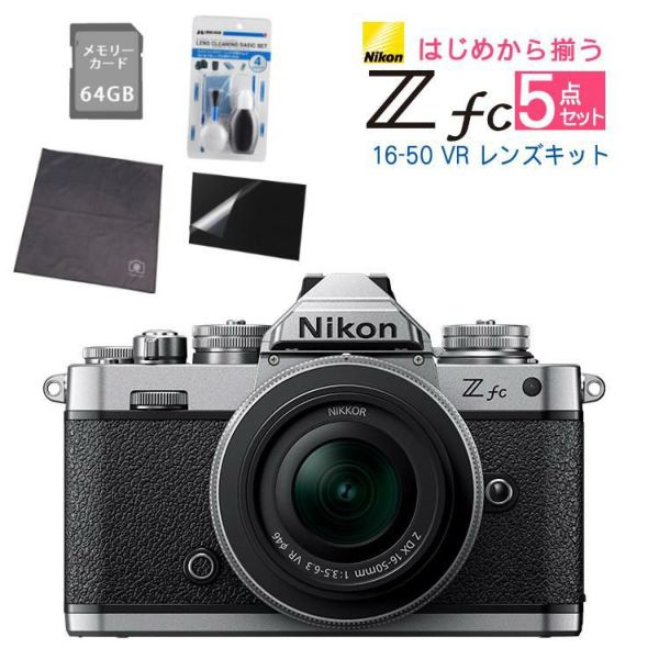 APS-Cサイズミラーレスカメラ「ニコンZ fc」 ニコン Nikon ミラーレス一眼カメラ Z fc 16-50 VR レンズキット シルバー APS-C (ベーシック5点セット)(ラッピング不可)