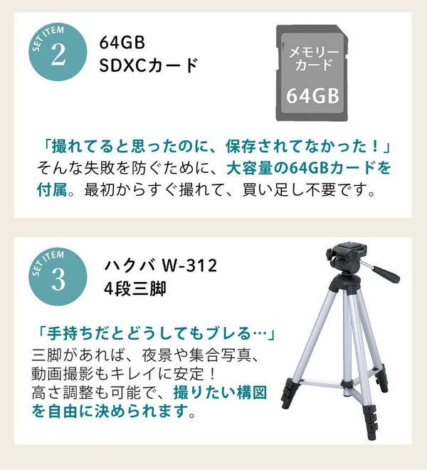 | 付属品 | USBケーブル・ショルダーストラップ・取扱説明書・保証書・リチウムイオン充電池BLS-50 |