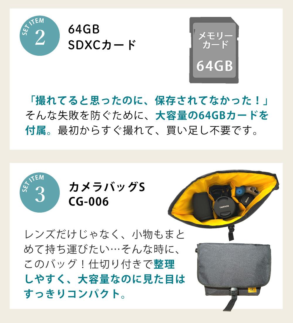 付属品:ボディー、USBケーブル(Type A to C)、ショルダーストラップ、取扱説明書、保証書、リチウムイオン充電池BLS-50