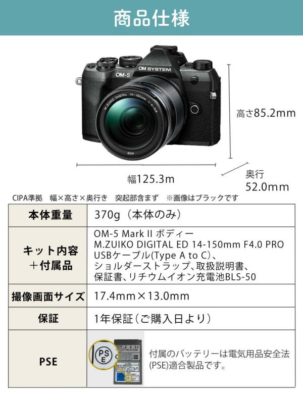 1)オーエムシステム OM-5 Mark II 14-150mm II レンズキット
