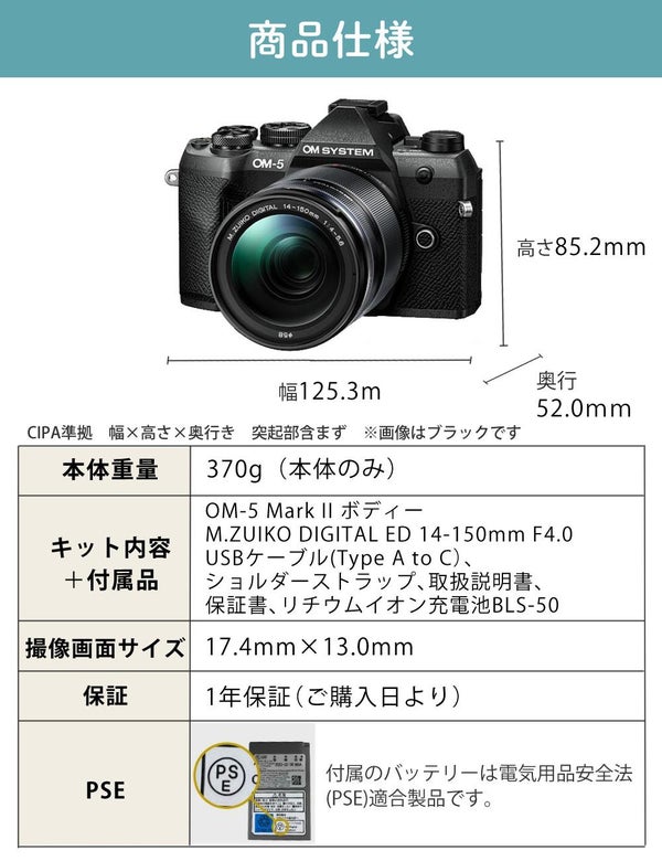 1)オーエムシステム OM-5 Mark II 14-150mm F4.0 PRO レンズキット
