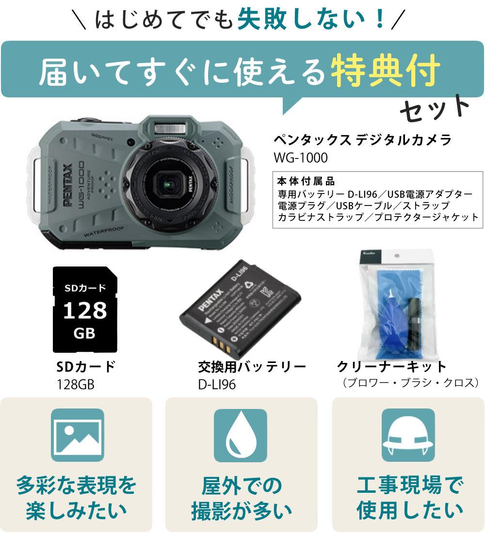 他の画像を見る ( 本格防水アウトドアカメラ ) ペンタックス デジタルカメラ WG-1000 オリーブ SDカード&バッテリー&クリーナー付き 4点セット 販売価格 ¥ 39,900 税込 カートに入れる お気に入りに登録する (0件)