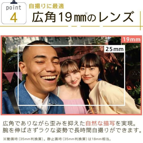 ●自撮りに適した広角19mm相当※のレンズ