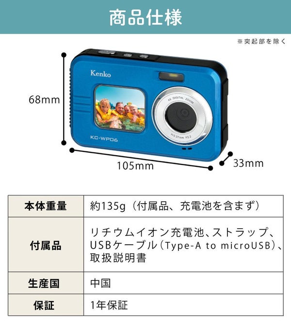 1)ケンコー 防水デジタルカメラ KC-WP06
