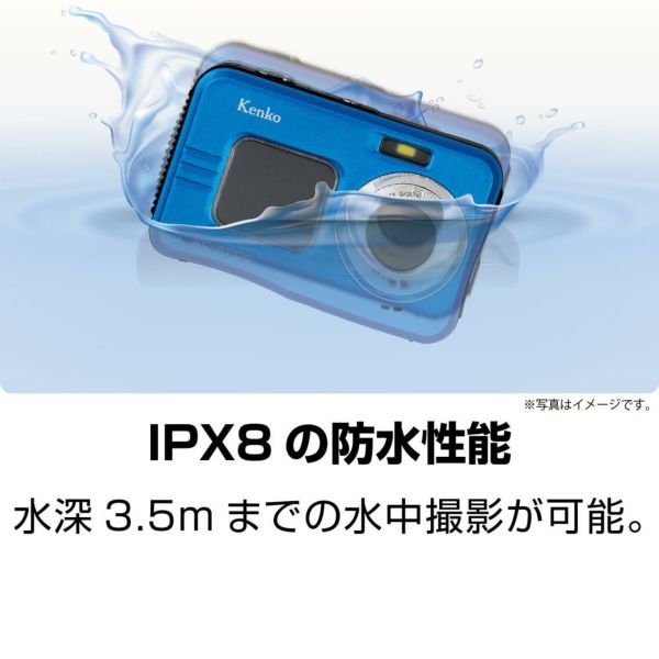 水深3.5mまで対応するIPX8の防水性能と、IP5Xの防塵性能を備えたコンパクトデジタルカメラです。