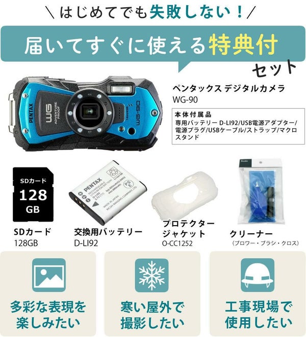 充電式リチウムイオンバッテリー / / 充電用電源アダプター / USBケーブル / ストラップ / マクロスタンド |