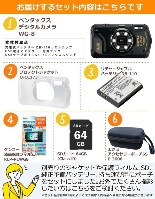 1)コンパクトデジタルカメラ ペンタックス(PENTAX) WG-8 ブラック