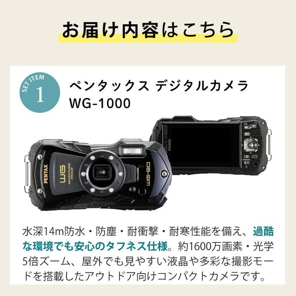 充電式リチウムイオンバッテリー / / 充電用電源アダプター / USBケーブル / ストラップ / マクロスタンド |