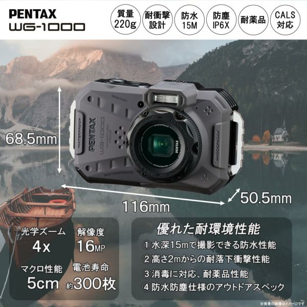 1)コンパクトデジタルカメラ ペンタックス(PENTAX) WG-1000 グレー