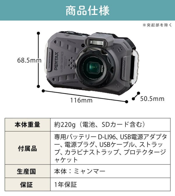 検索ワード:ペンタックス リコー 防水カメラ 防水デジカメ アクション 水中撮影 高耐久 アウトドア タフ 防塵 高画質 コンパクト デジタル 旅行 スポーツ 耐衝撃 ハード アウトドア 工事現場 現場 漁業 農業 外 キャンプ 小型