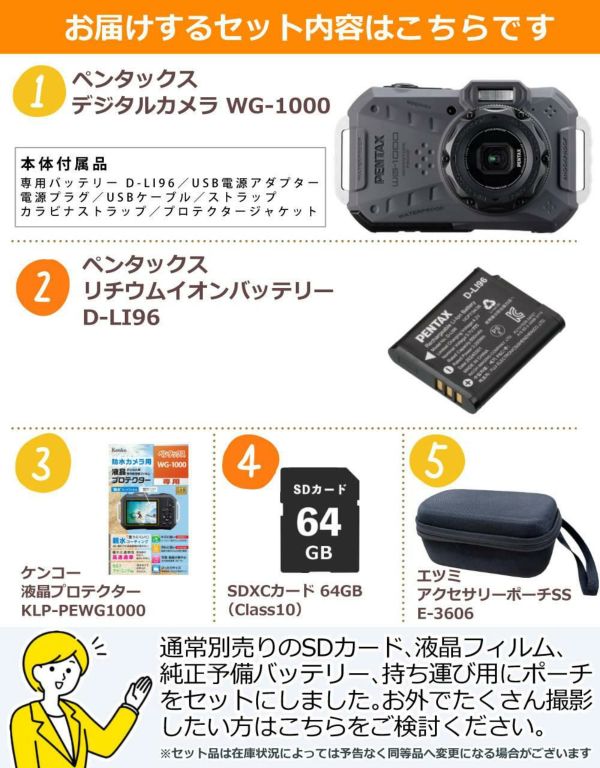 1)コンパクトデジタルカメラ ペンタックス(PENTAX) WG1000 グレー