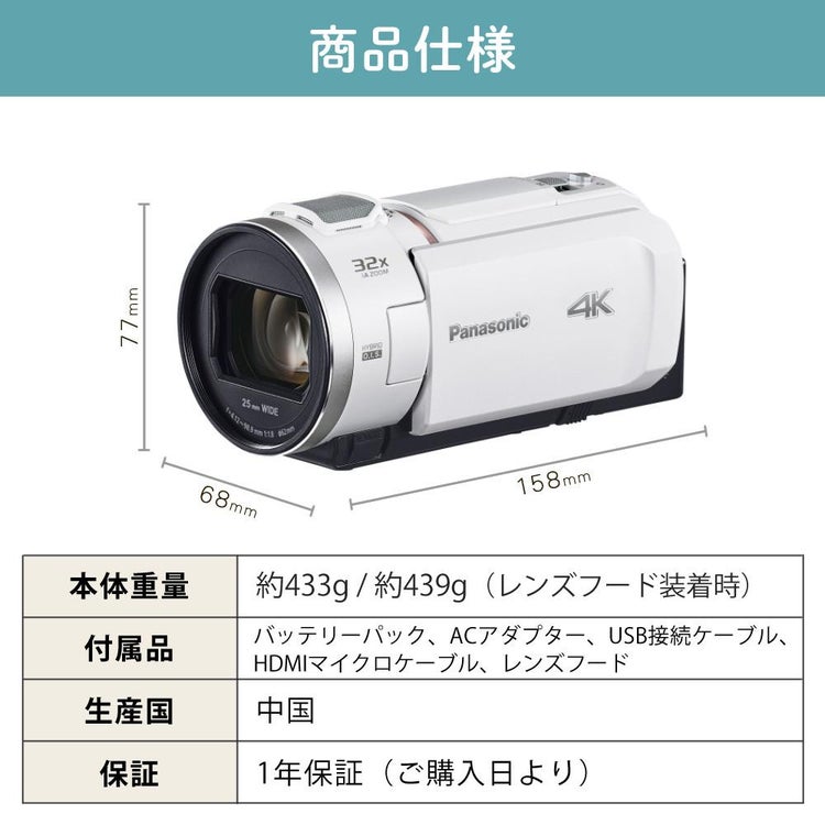 | ズーム | iAズーム 4K:32倍、2K:48倍、光学ズーム 、 デジタルズーム:70倍/250倍 (Max.値は、2段階設定可能)