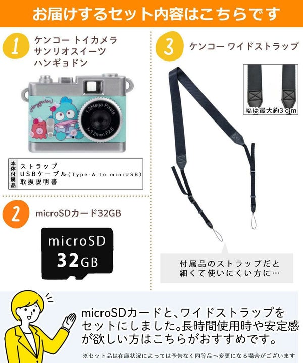 ケンコー トイカメラ サンリオスイーツ ハンギョドン DSC-PIENI SW HG microSDカード&ワイドストラップ付き セット