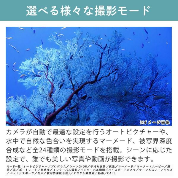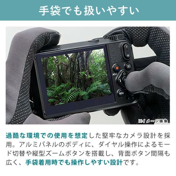 本格防水・防塵・耐衝撃・耐寒・耐荷重のタフネスボディで、過酷な環境でも安心して使えるコンパクトデジタルカメラです。水深20mで連続2時間の撮影が可能な防水性能や、-10℃でも動作する耐寒性能を備えています。
