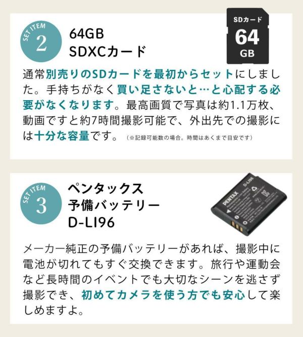 【付属品】専用バッテリー D-LI96、USB電源アダプター、電源プラグ、USBケーブル、ストラップ、カラビナストラップ、プロテクタージャケット 【生産国】本体:ミャンマー |