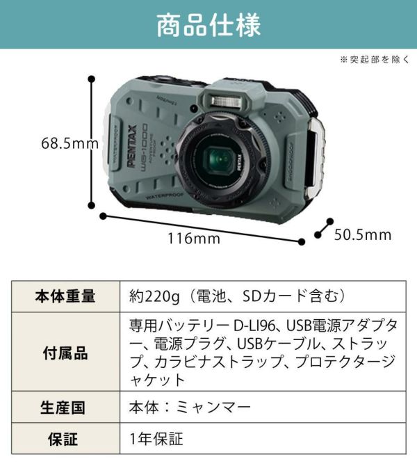 検索ワード:ペンタックス リコー 防水カメラ 防水デジカメ アクション 水中撮影 高耐久 アウトドア タフ 防塵 高画質 コンパクト デジタル 旅行 スポーツ 耐衝撃 ハード アウトドア 工事現場 現場 漁業 農業 外 キャンプ 小型