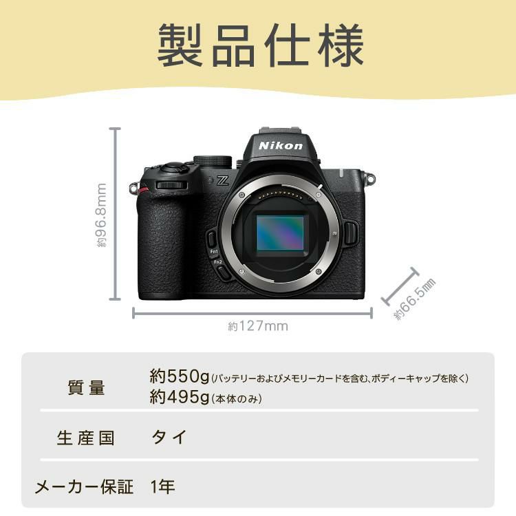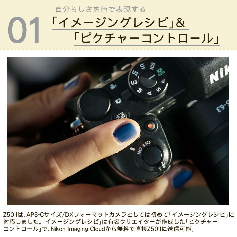 他の画像を見る APS-CサイズDXフォーマット、有効画素数2088万画素 ニコン ミラーレスカメラ Z50II 18-140 VR レンズキット Nikon(三脚・バッグ付6点セット) 販売価格 ¥ 183,500 税込 カートに入れる お気に入りに登録する (0件)