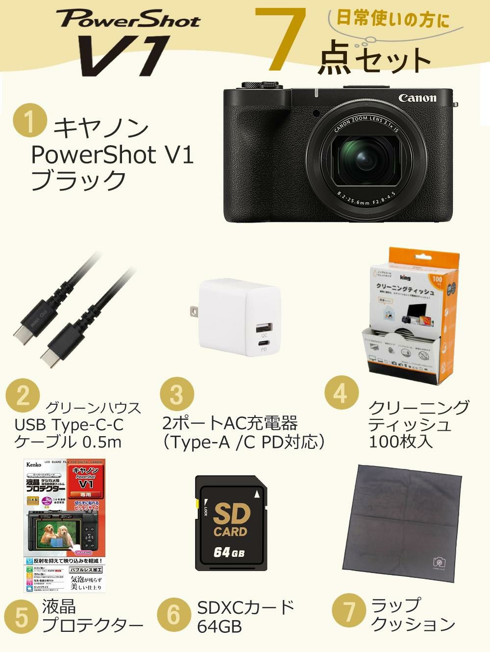 他の画像を見る 日常使いにお気軽セット キヤノン PowerShot V1 コンパクトデジタルカメラ ブラック 2230万画素 デジカメ 高画質(お気軽7点セット) 販売価格 ¥ 131,800 税込 カートに入れる お気に入りに登録する (0件)