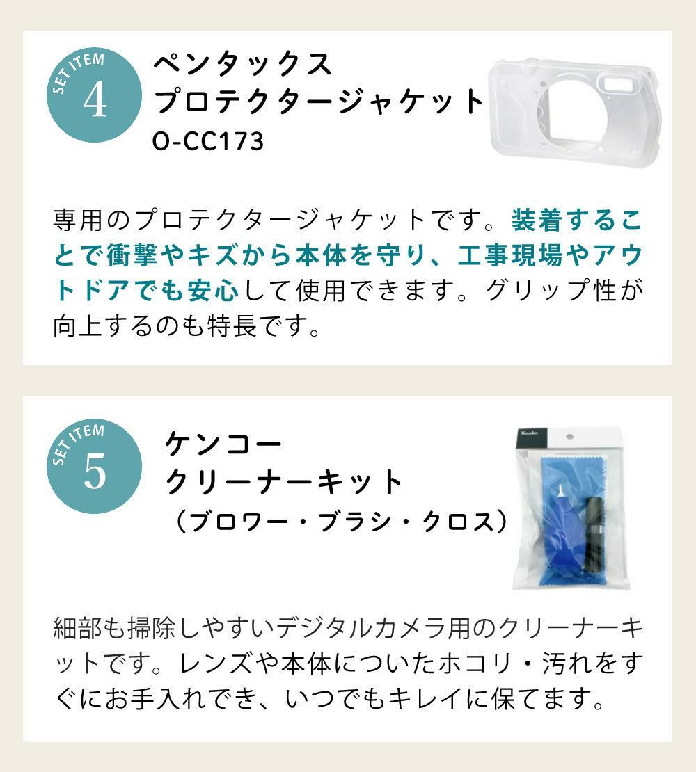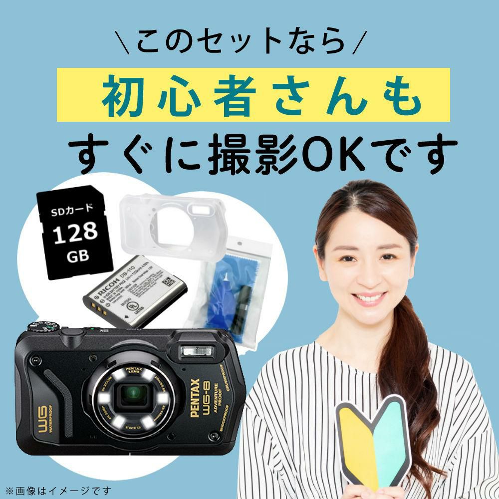 他の画像を見る 本格防水、耐衝撃、防塵、耐寒。ビジネスシーンで役立つWEBカメラ機能も搭載。 ペンタックス デジタルカメラ WG-8 ブラック プロテクター&SDカード&バッテリー&クリーナー付き 5点セット 販売価格 ¥ 67,990 税込 カートに入れる お気に入りに登録する (0件)