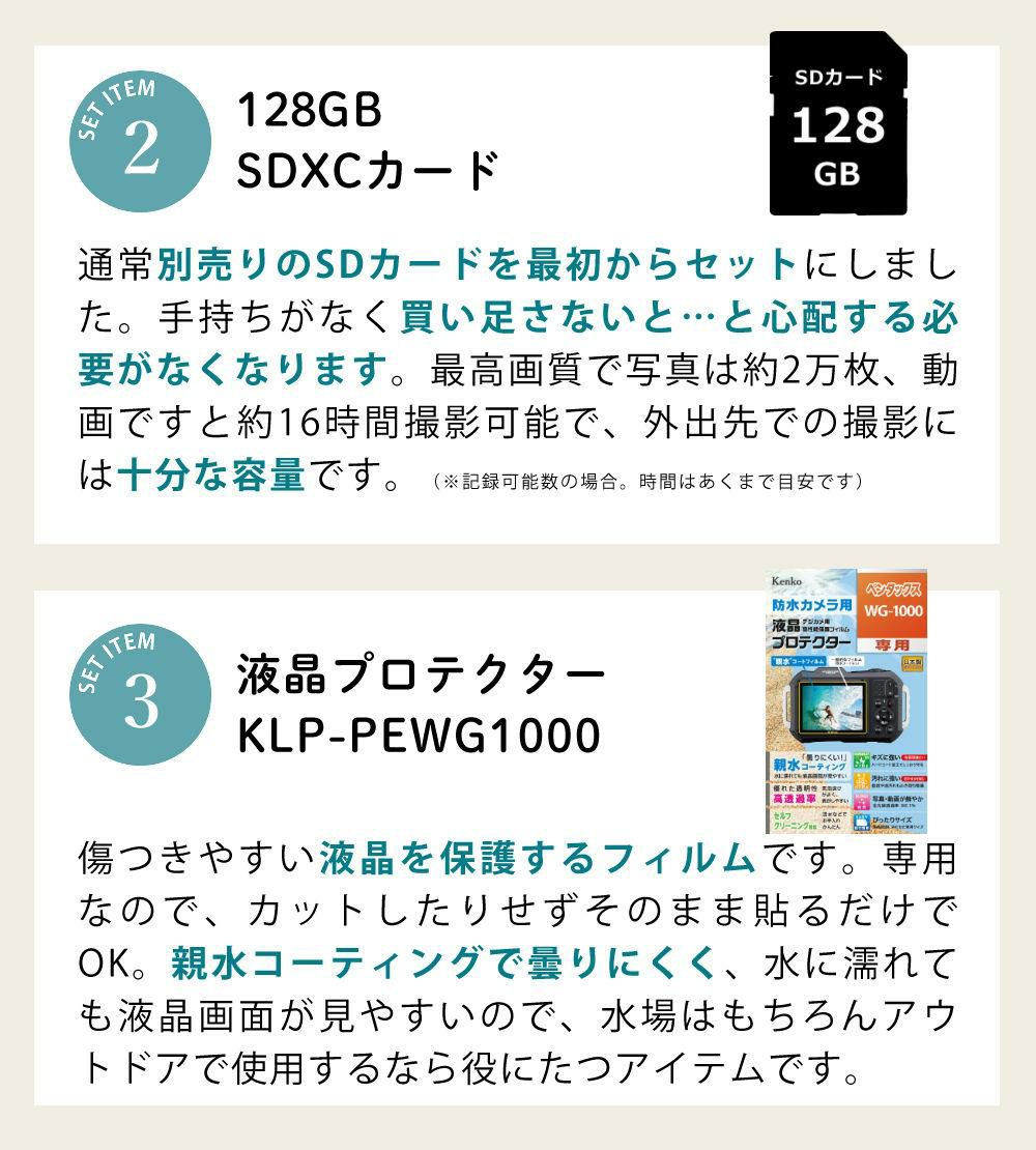 他の画像を見る ( 本格防水アウトドアカメラ ) ペンタックス デジタルカメラ WG-1000 グレー SDカード&バッテリー&クリーナー付き 4点セット 販売価格 ¥ 39,900 税込 カートに入れる お気に入りに登録する (0件)