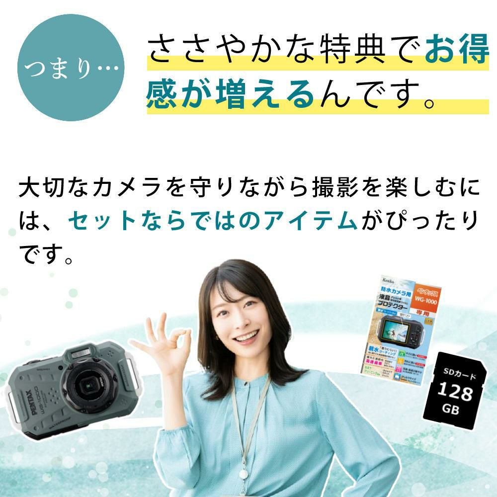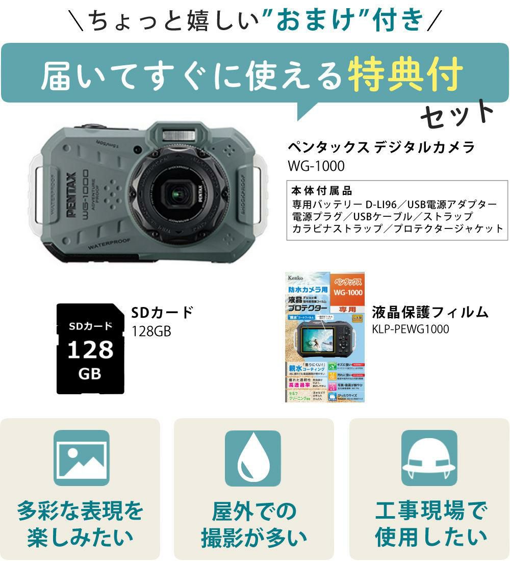 他の画像を見る ( 本格防水アウトドアカメラ ) ペンタックス デジタルカメラ WG-1000 オリーブ SDカード&バッテリー&クリーナー付き 4点セット 販売価格 ¥ 39,900 税込 カートに入れる お気に入りに登録する (0件)