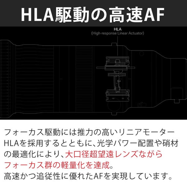 フォーカス駆動には推力の高いリニアモーターHLAを採用するとともに、