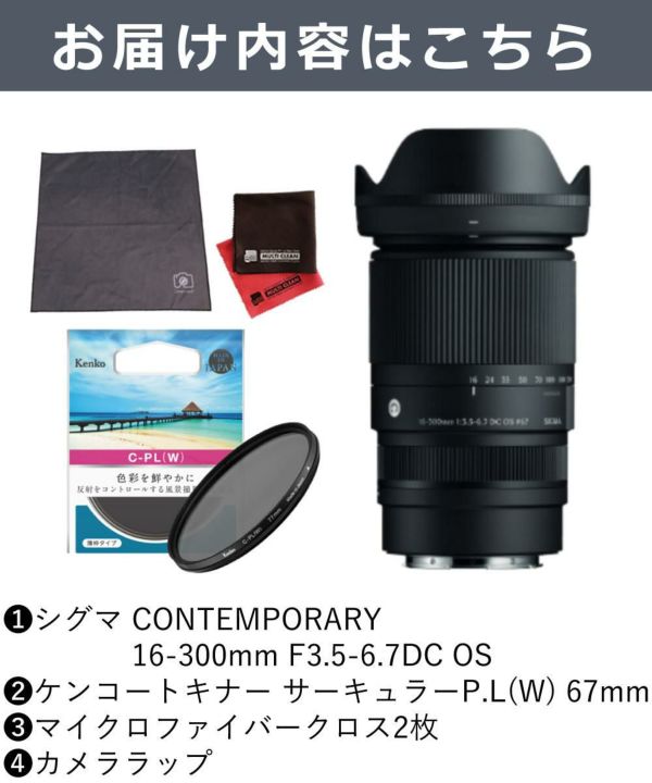 焦点距離70mm で 最大撮影倍率1:2 の マクロ撮影 ズームロックスイッチ フレア ゴースト抑制 フォーカスブリージング低減設計 動画撮影 に最適 高屈折率ガラス 非球面レンズ で 高画質 (レビューでプレゼント) ケンコーサーキュラーPLフィルターセット シグマ 16-300mm F3.5-6.7 DC OS(C) 富士フイルムX用