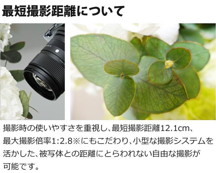 他の画像を見る 焦点距離70mm で 最大撮影倍率1:2 の マクロ撮影 ズームロックスイッチ フレア ゴースト抑制 フォーカスブリージング低減設計 動画撮影 に最適 高屈折率ガラス 非球面レンズ で 高画質 (レビューでプレゼント) レンズ保護フィルター付 シグマ 16-300mm F3.5-6.7 DC OS(C) ソニーEマウント用 販売価格 ¥ 110,800 税込 カートに入れる お気に入りに登録する (0件)