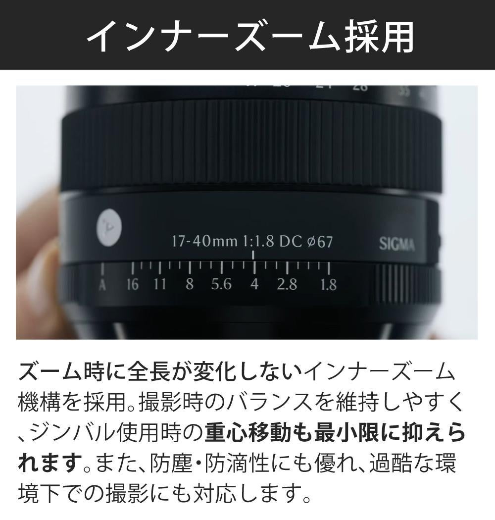 他の画像を見る 単焦点並みの大口径と描写力を備えた標準ズームレンズ (レビューでプレゼント) レンズ保護フィルター付 シグマ 17-40mm F1.8 DC(Art) キヤノンRFマウント用 販売価格 ¥ 134,980 税込 カートに入れる お気に入りに登録する (0件)