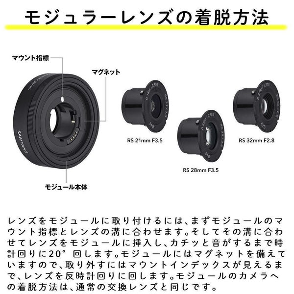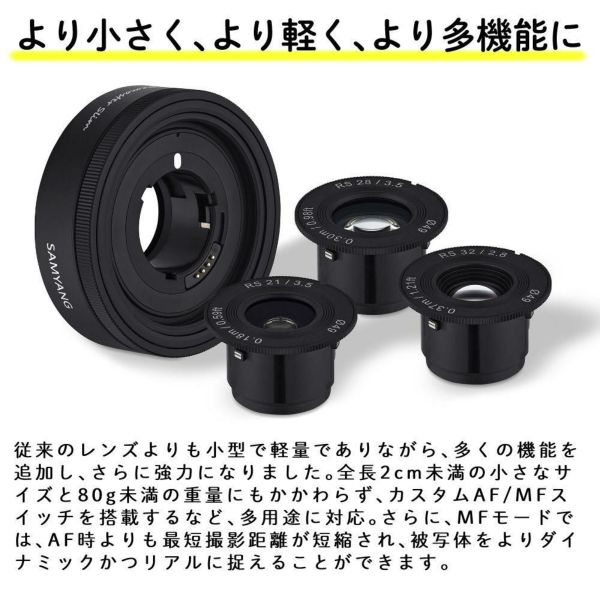 | レンズ | RS 21mm F3.5 | RS 28mm F3.5 | RS 32mm F2.8 |