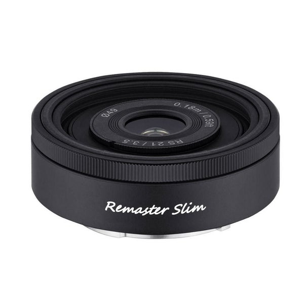 「Remaster Slim」は従来のレンズよりも小型で軽量でありながら、多くの機能を追加し、さらに強力になりました。このモデルは、ユーザーが必要とする様々な撮影機能と優れた携帯性を提供し、どんな撮影環境でも卓越した性能を発揮します。全長2cm未満の小さなサイズと80g未満の重量にもかかわらず、カスタムAF/MFスイッチを搭載するなど、多用途に対応。さらに、MFモードでは、AF時よりも最短撮影距離が短縮され、被写体をよりダイナミックかつリアルに捉えることができます。