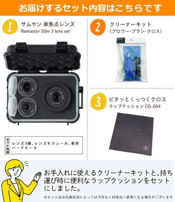 サムヤン SAMYANG Remaster Slim 3 lens set ソニーEマウント用 クリーナー&ラップクッション付き セット