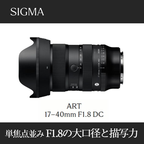 Sigma 17-40mm F1.8 DC Art は APS-C ミラーレス対応の 大口径 ズームレンズで、F1.8 通しにより ズーム全域で明るさを保ち、旅行撮影 や ポートレート、風景撮影、星空撮影 に最適。動画撮影 でも フォーカスブリージング抑制 により 自然なピント表現が可能で、HLA AF を搭載した 高速 静音 フォーカス が スナップ撮影 にも活躍。撥水防汚コート、防塵防滴構造、絞りリング や AFLボタン も備え、Sony E マウント や Canon RF、Fujifilm X など 多マウント に対応。コンパクト な 535g(ライカ Lの重さ) の軽量設計で、67mmフィルター径 を採用。