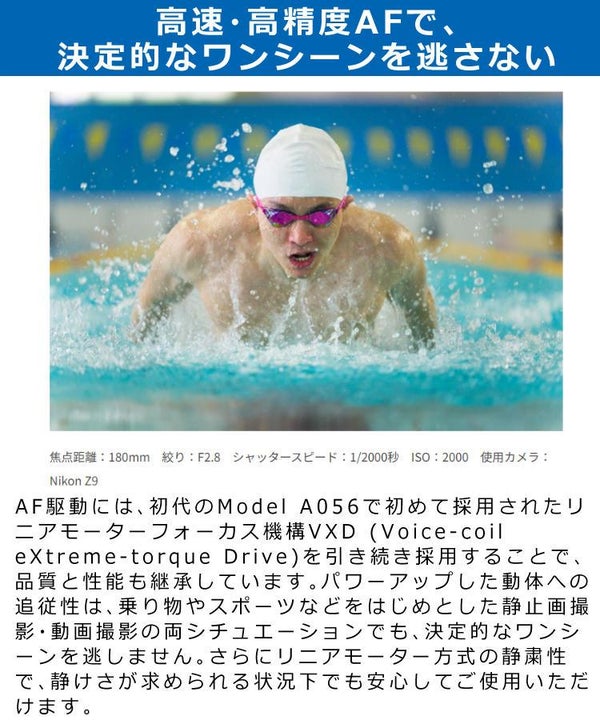 ズーム全域で妥協のない描写性能を発揮し、広角端では最短撮影距離0.3mの近接撮影が可能。本レンズならではの、被写体へ大胆に寄った写真表現が楽しめます。AF駆動には高速・高精度なAFを可能にするリニアモーターフォーカス機構VXD (Voice-coil eXtreme-torque Drive)を搭載しており、静止画だけでなく動画撮影でも安定したフォーカス性能を発揮します。