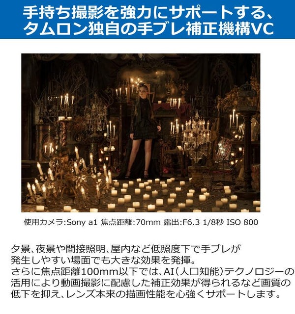 * 手ブレ補正機構搭載フルサイズミラーレス用大口径F2.8望遠ズームレンズにおいて。(2025年9月現在。タムロン調べ)