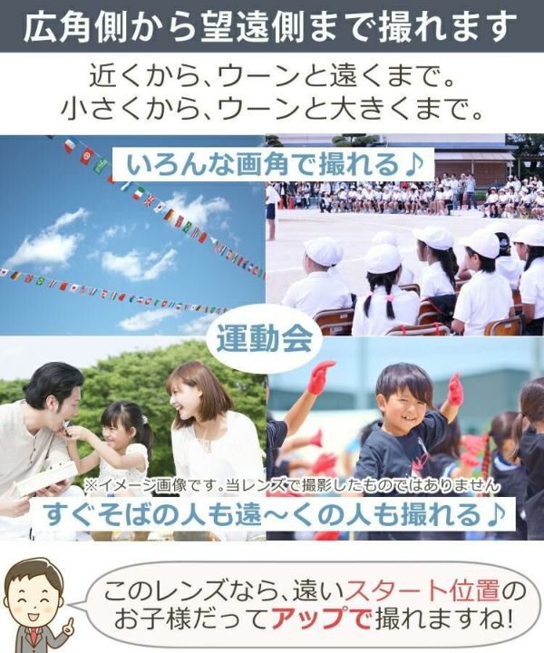 | 画角(対角画角) | 73°49'- 5°10'(APS-Cサイズ ミラーレス一眼カメラ使用時) |