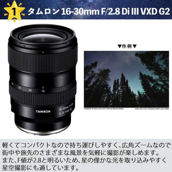 1)タムロン 16-30mm F/2.8 Di III VXD G2 (Model A064)