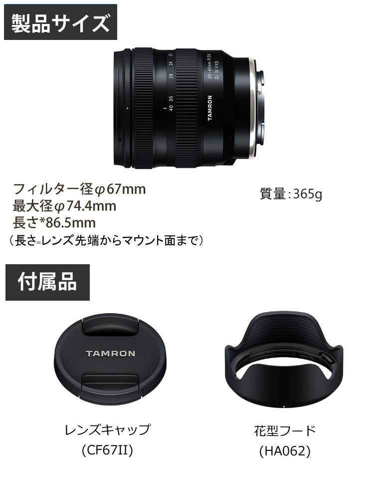 TAMRON タムロン 20-40mm F/2.8 Di III VXD (Model A062)大口径標準ズームレンズ ソニーEマウント&レンズ保護フィルターセット