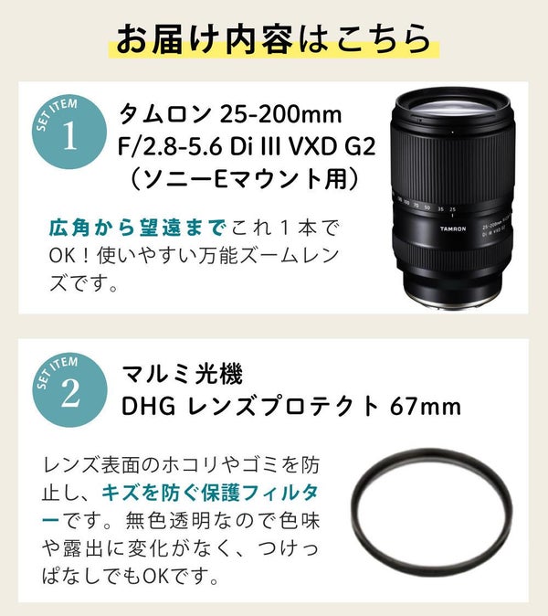 1)タムロン TAMRON 25-200mm F/2.8-5.6 Di III VXD G2 (Model A075) ソニーEマウント用