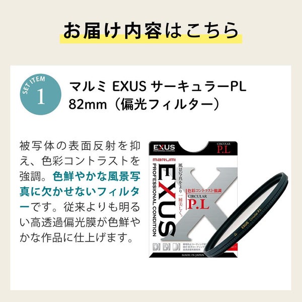 マルミ光機のEXUS サーキュラーPL 82mmは、レンズフィルター 82mmを探している方に向けた
