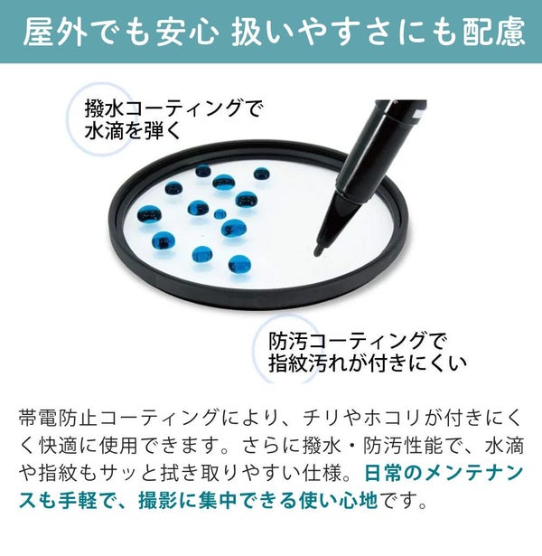 レンズに触れて汚れてしまっても、汚れが付きづらく指紋汚れも簡単に拭き取れます。