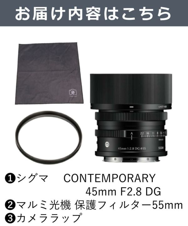 SIGMA 45mm F2.8 DG Contemporary は、フルサイズ対応 の ミラーレス 一眼レフ 用 標準レンズ です。 コンパクト かつ 軽量 な設計で、風景 や ポートレート の撮影に最適。 静音AF 搭載 で スナップ撮影 も快適に楽しめます。 ソニーEマウント と Lマウント に対応し、多彩な クリエイティブ撮影 が可能です。