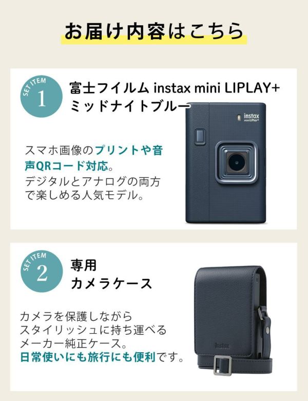| 2)富士フイルム instax mini LiPlay+ カメラケース ネイビー |