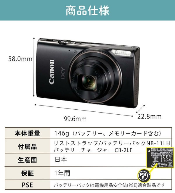 【同梱品】本体、リストストラップ WS-800、バッテリーパック NB-11LH、バッテリーチャージャー CB-2LF